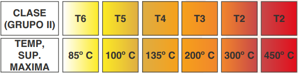 Para los tipos de protección “d”, “i”, “nC” y “nL”, los materiales eléctricos del Grupo II se subdividen en IIA, IIB, y IIC, como está definido en las normas específicas correspondientes a estos modos de protección.