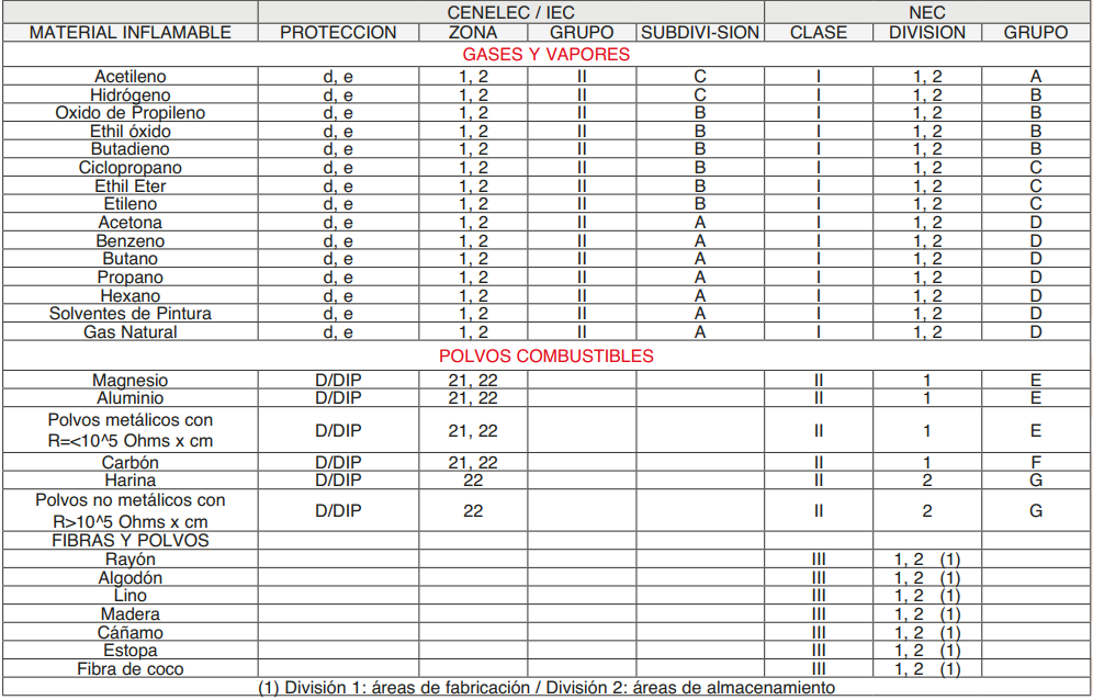 Fuente: Oscar Osvaldo Covelli, Manual de instalaciones electricas en áreas clasificadas, Tomo I.