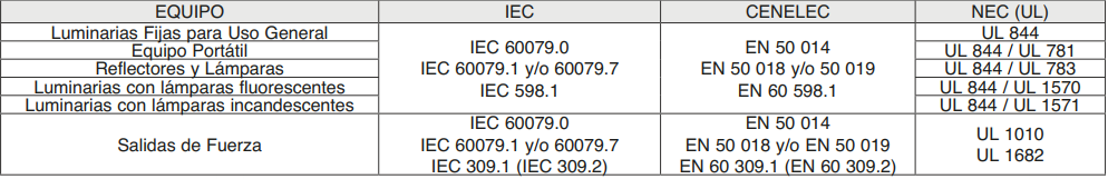 Algunas de las principales normas que rigen las instalaciones electricas en áreas clasificadas e instalaciones eléctricas antiexplosivas son: las normas NEC y las normas IEC